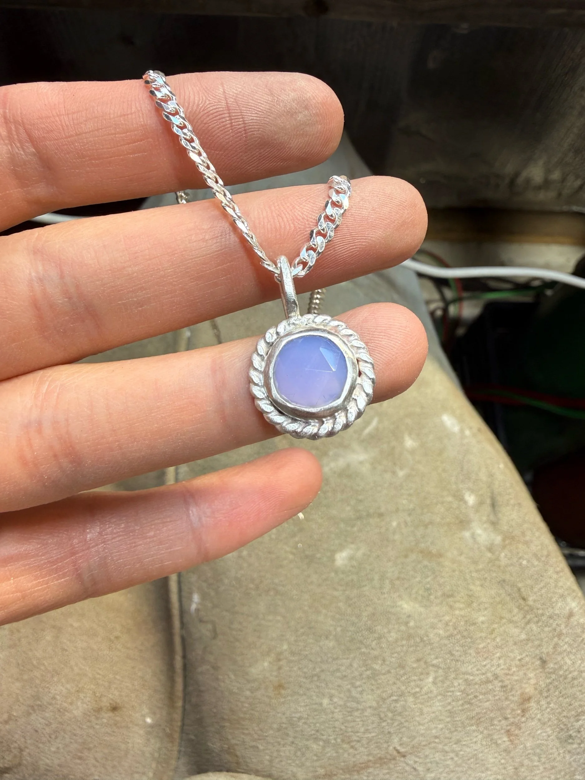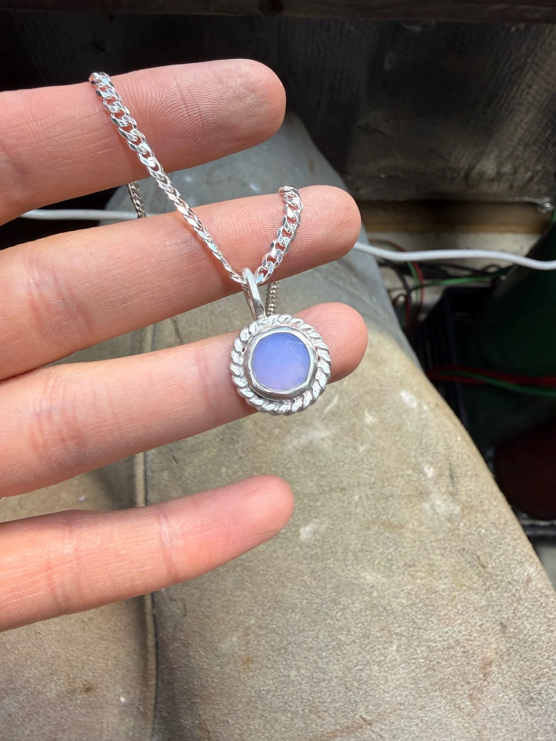 Shop › Chalcedony Necklace Image 1 of 2 Image 2 of 2 Chalcedony Necklace $98.00 16” mini curb chain Add To Cart Added! 16” mini curb chain