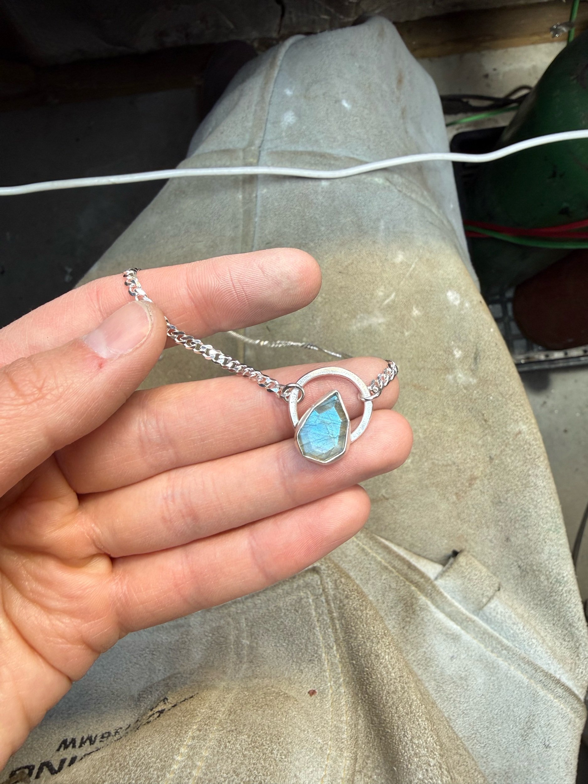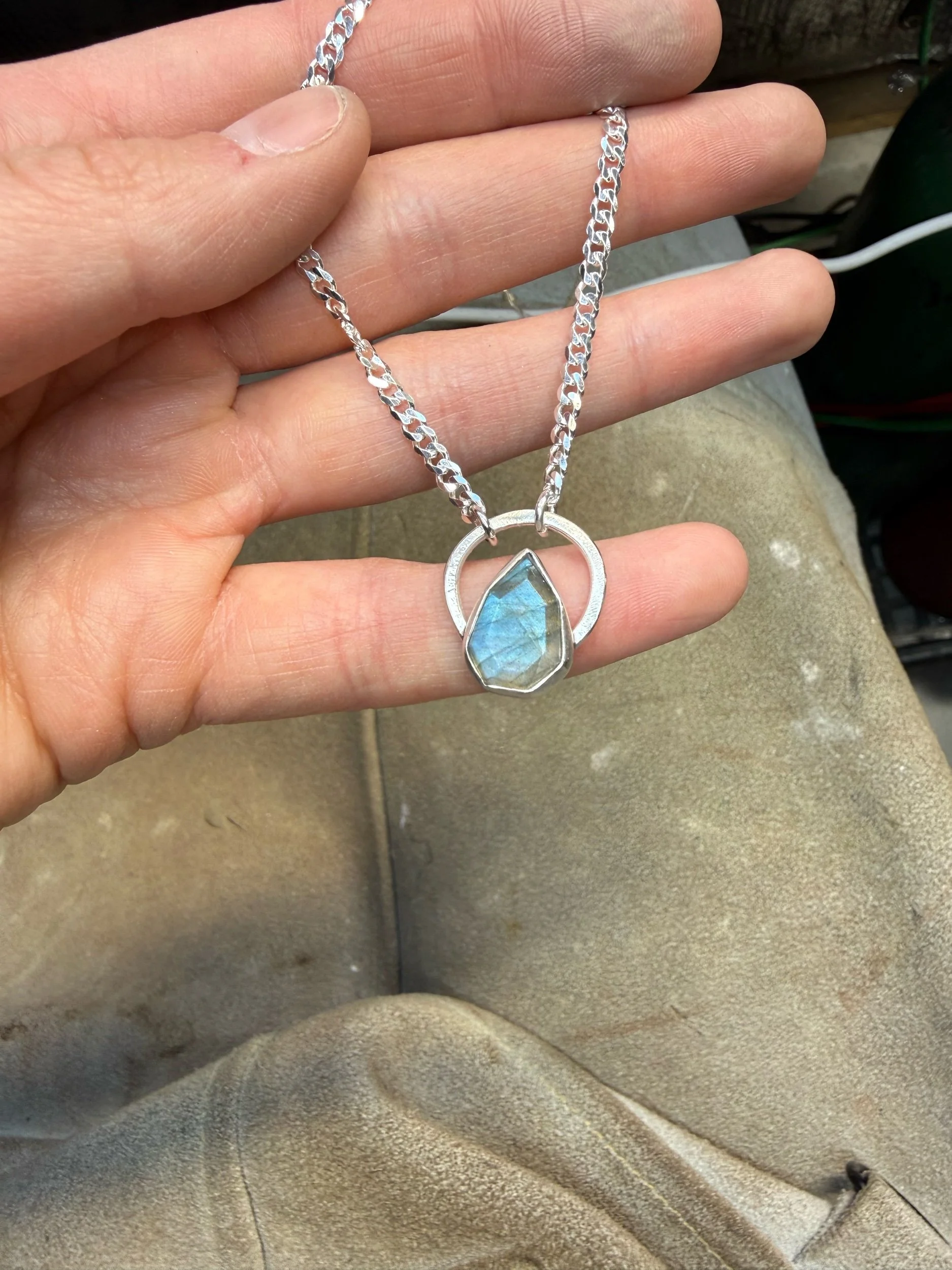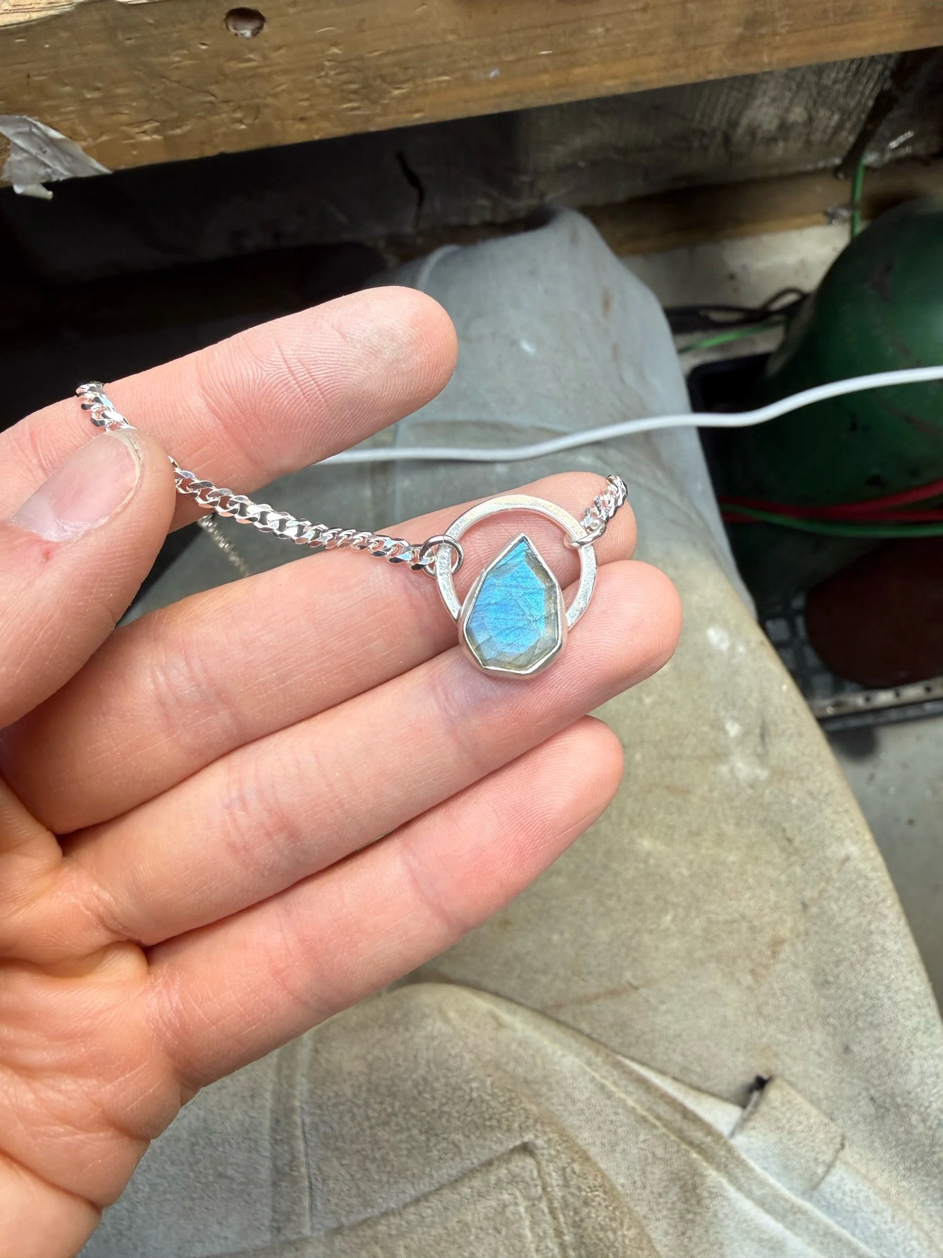 Shop › Labradorite Charm Necklace Image 1 of 3 Image 2 of 3 Image 3 of 3 Labradorite Charm Necklace $95.00 16” chain Add To Cart Added! 16” chain